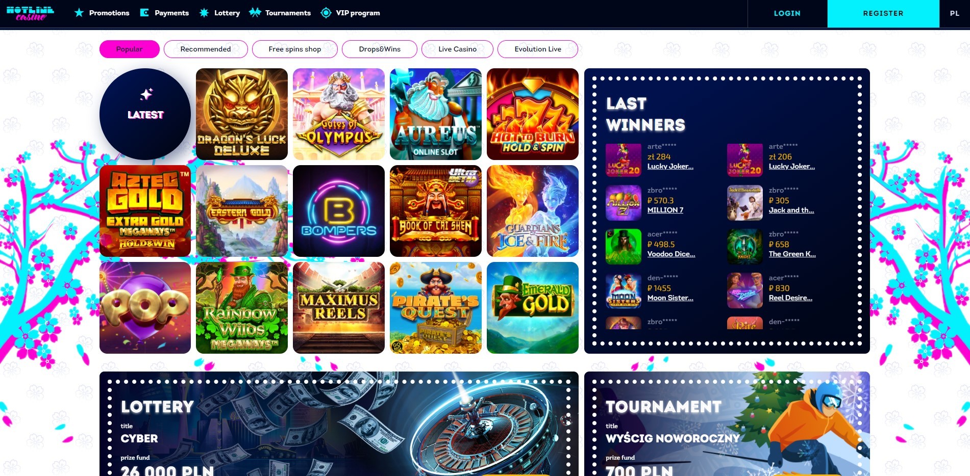 Hotline Kasyno to nie tylko bonusy, ale również szeroki wybór gier i producentów. Kasyno świadczy usługi z zakresu gier na żywo i automatów do gry, organizuje turnieje z atrakcyjnymi nagrodami i udostępnia loterie z dużymi pulami nagród. Prawdziwi fani Hotline Casino za darmo mogą dołączyć do klubu VIP, gdzie zdobęda jeszcze większe przywileje i będą korzystać z najlepszych ofert w pierwszej kolejności.