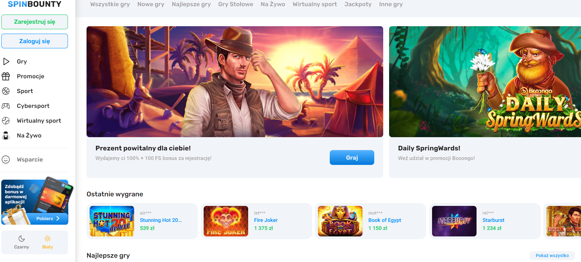 - Najlepsze gry. Są to tytuły cieszące się największym uznaniem wśród graczy w SpinBounty.